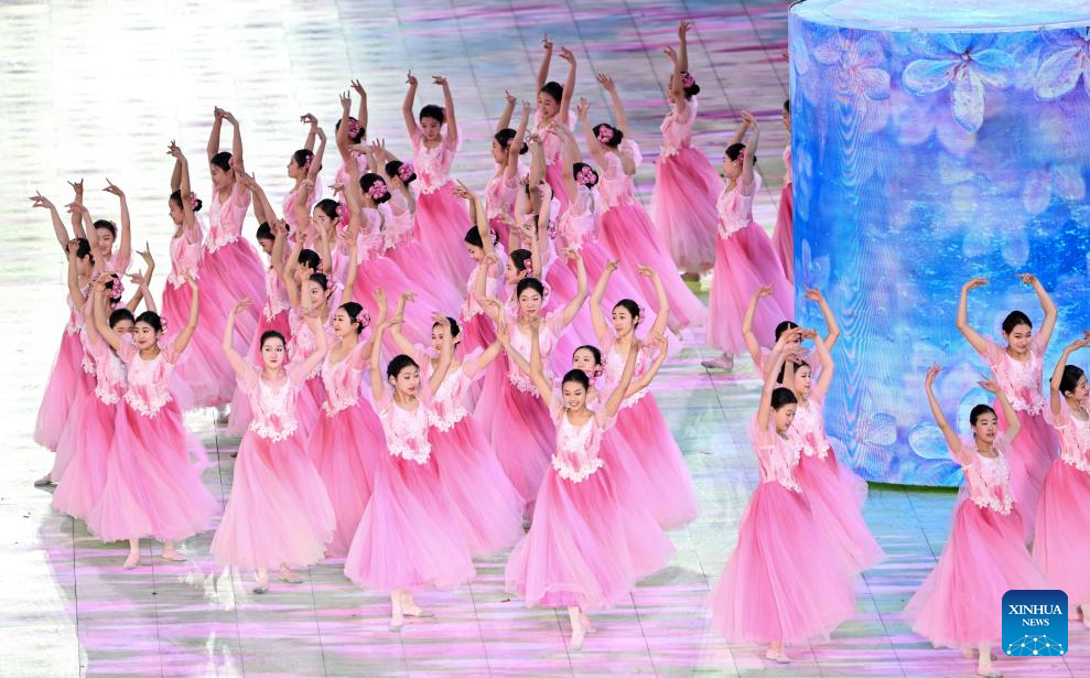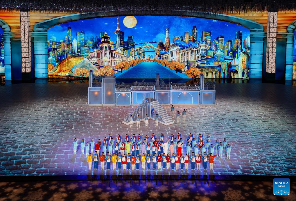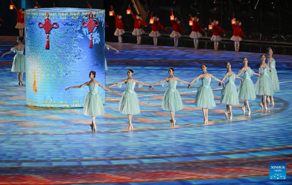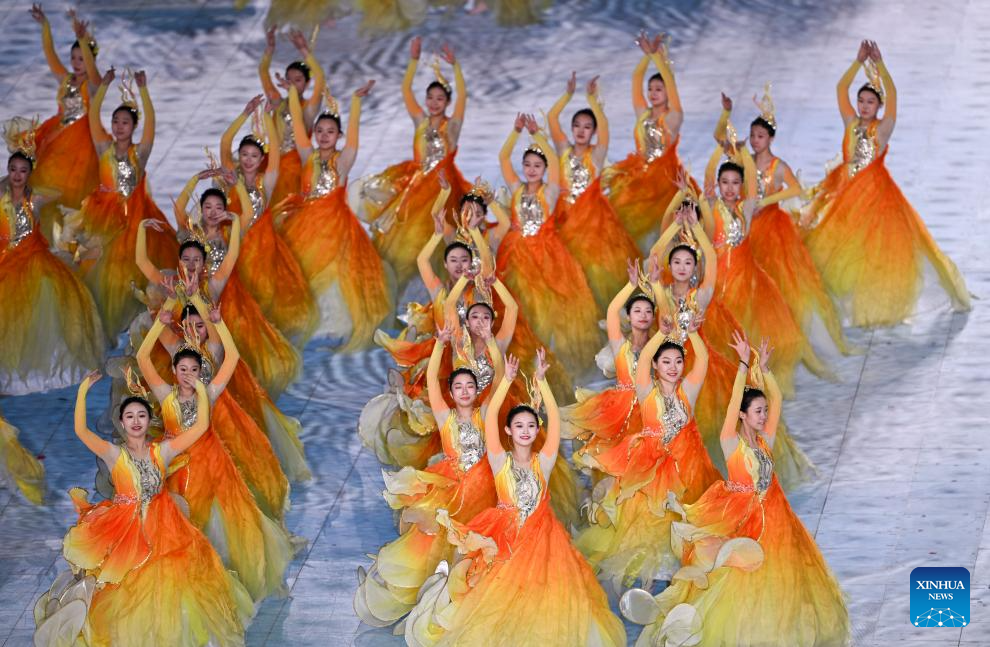 Artists perform during the closing ceremony of the 9th Asian Winter Games in Harbin, northeast China's Heilongjiang Province, Feb. 14, 2025. (Xinhua/Wang Jianwei)