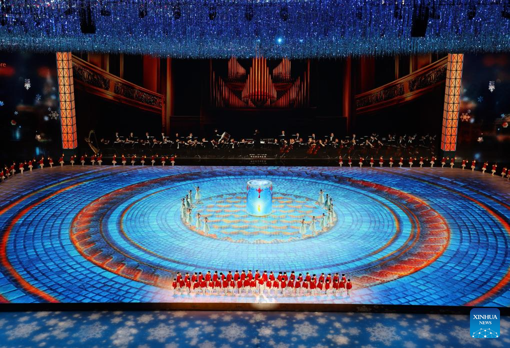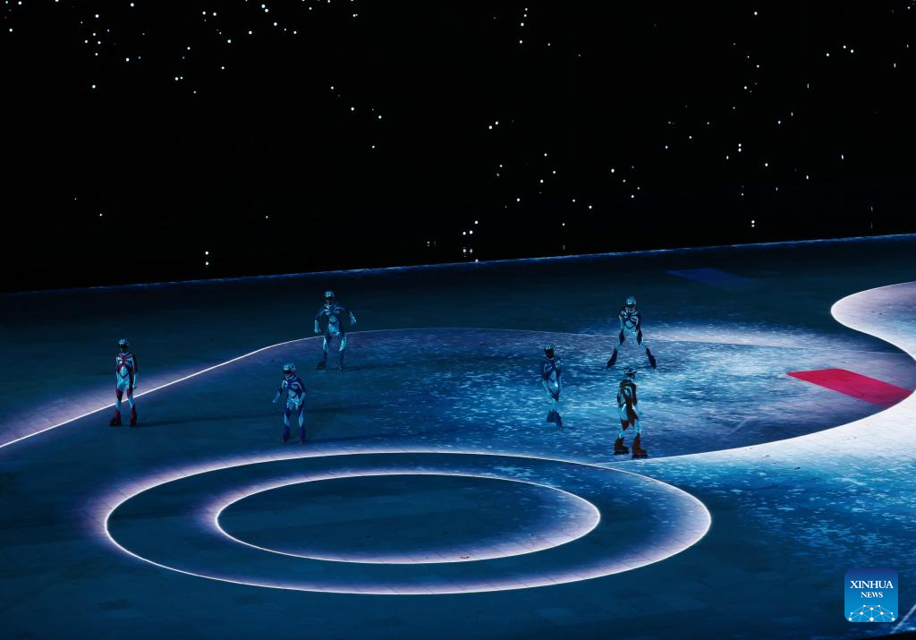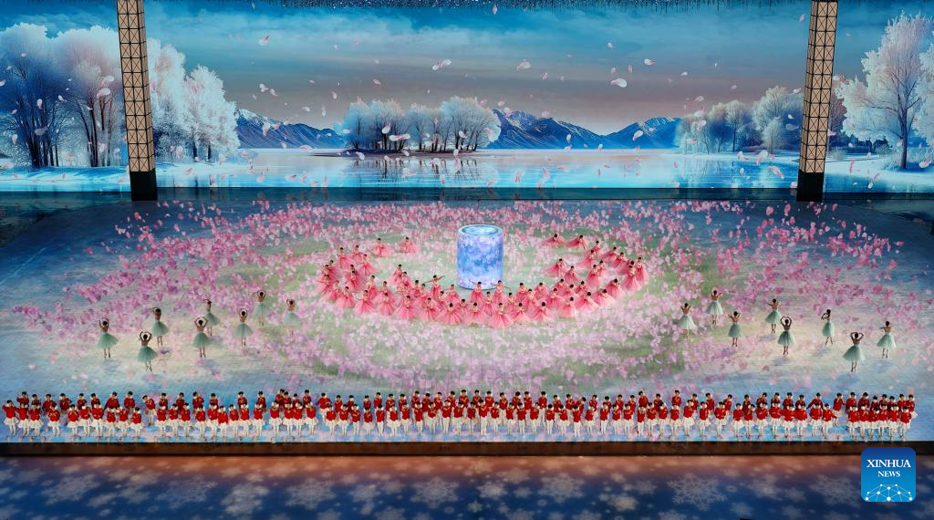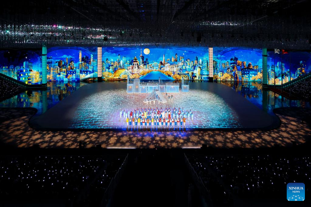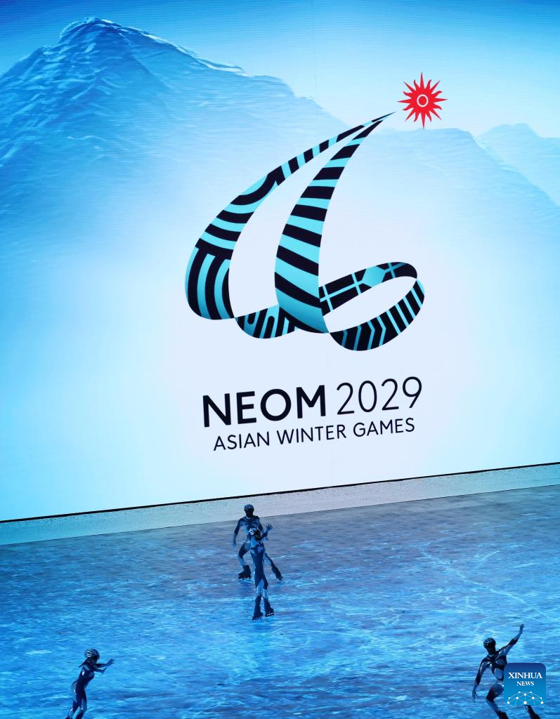 Artistic performance of the 10th Asian Winter Games host city Neom of Saudi Arabia is presented during the closing ceremony of the 9th Asian Winter Games in Harbin, northeast China's Heilongjiang Province, Feb. 14, 2025. (Xinhua/Lai Xiangdong)