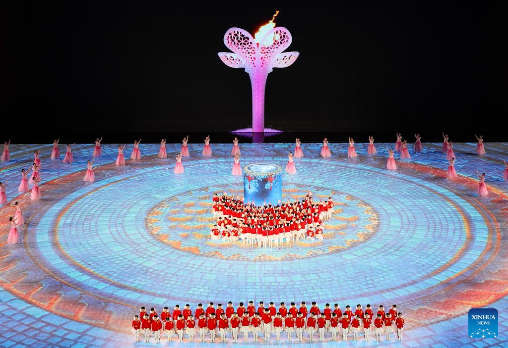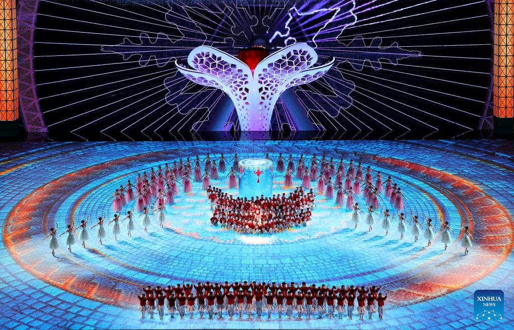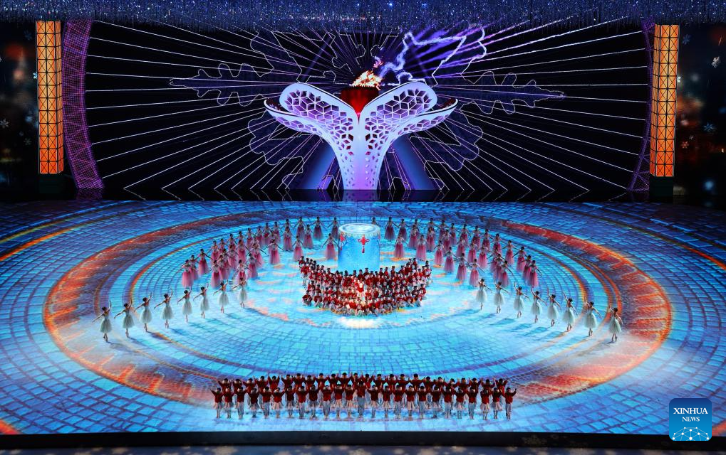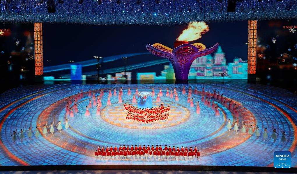 Artists perform during the closing ceremony of the 9th Asian Winter Games in Harbin, northeast China's Heilongjiang Province, Feb. 14, 2025. (Xinhua/Huang Bohan)