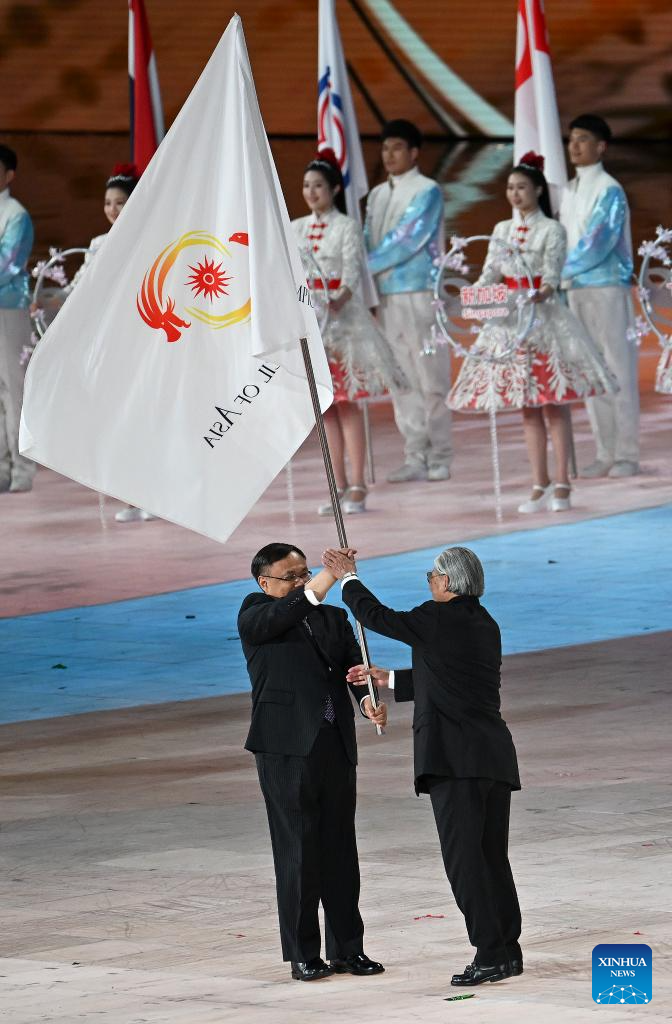 As the OCA flag was lowered and the OCA anthem played, Harbin's mayor Wang Hesheng handed the flag to Fok, who in turn entrusted it to the H.R.H. Prince Abdulaziz bin Turki Al-Faisal, Minister of Sports and president of the Saudi Arabia Olympic and Paralympic Committee. Saudi Arabia will host the Asian Winter Games for the first time in 2029.