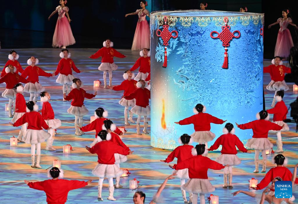 Artists perform during the closing ceremony of the 9th Asian Winter Games in Harbin, northeast China's Heilongjiang Province, Feb. 14, 2025. (Xinhua/Zhang Tao)