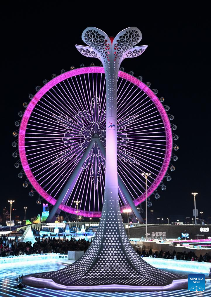 The Harbin Ice and Snow World Park is seen after the closing ceremony of the 9th Asian Winter Games in Harbin, northeast China's Heilongjiang Province, Feb. 14, 2025. (Xinhua/Sun Fei)
