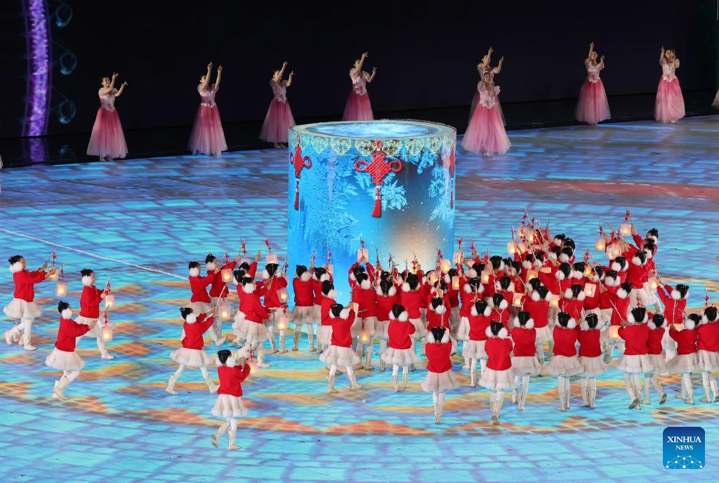 Children perform during the closing ceremony of the 9th Asian Winter Games in Harbin, northeast China's Heilongjiang Province, Feb. 14, 2025. (Xinhua/Xu Yanan)