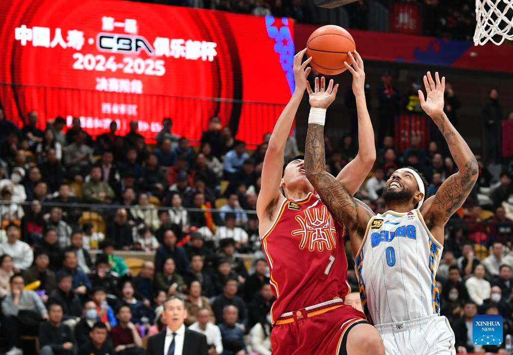 Sun Yahui of Beijing Ducks goes for a layup during a match between Beijing Ducks and Shanxi Loongs at the Chinese Basketball Association (CBA) Club Cup in Xi'an, northwest China's Shaanxi Province, Jan. 14, 2025. (Xinhua/Zhang Bowen)