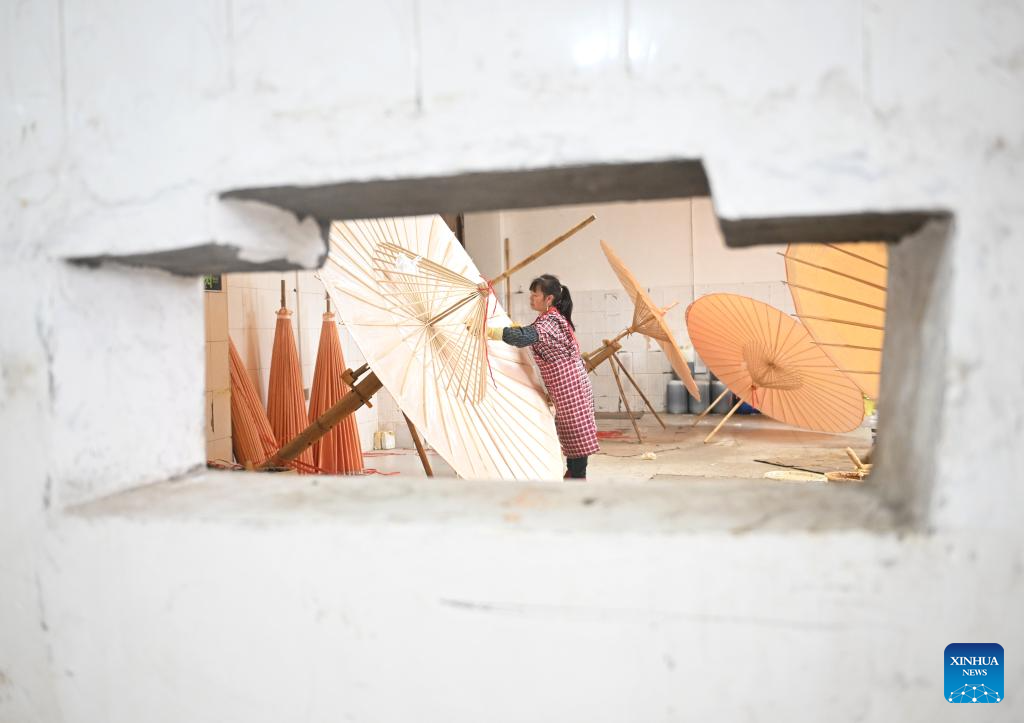 Pic story of oil-paper umbrella making in Fenshuiling, China's Sichuan