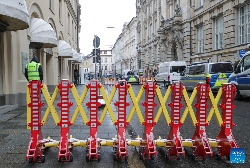A street near the hotel holding the 61st Munich Security Conference is blockaded in Munich, Germany, Feb. 16, 2025. The three-day Munich Security Conference concluded here on Sunday. (Xinhua/Zhang Fan)