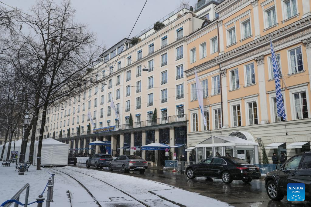 This photo shows the hotel holding the 61st Munich Security Conference in Munich, Germany, Feb. 16, 2025. The three-day Munich Security Conference concluded here on Sunday. (Xinhua/Zhang Fan)