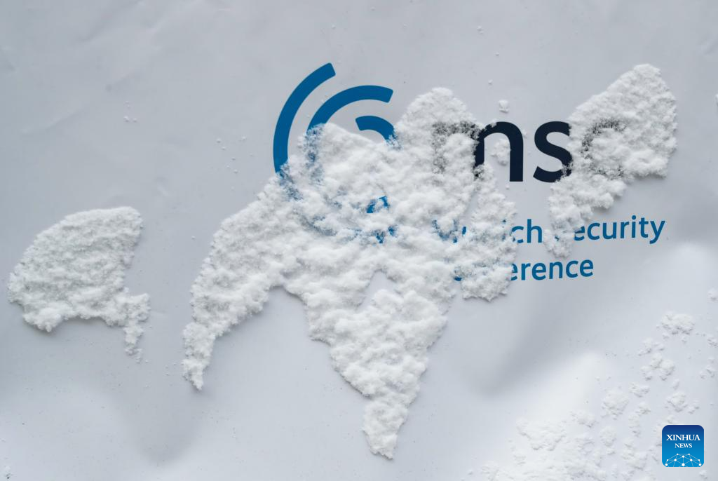 This photo shows the snow-covered logo of Munich Security Conference in Munich, Germany, Feb. 16, 2025. The three-day Munich Security Conference concluded here on Sunday. (Xinhua/Zhang Fan)