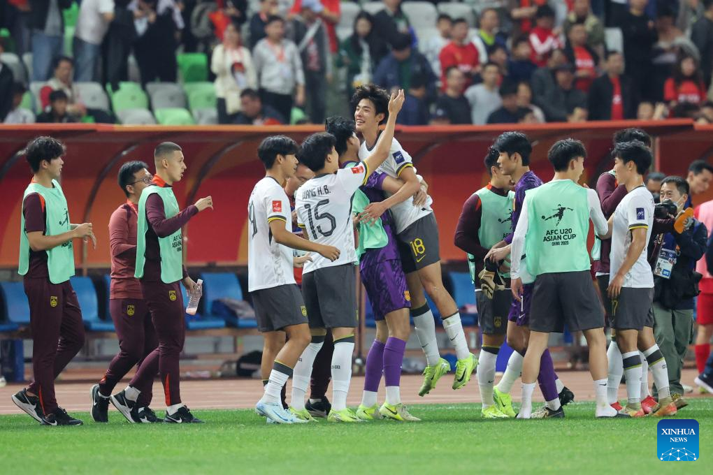 SHENZHEN, Feb. 15 (Xinhua) -- Substitute Zhu Pengyu scored twice as host China defeated Kyrgyzstan 5-2 in AFC U20 Asian Cup Group A action on Saturday, securing a spot in the last eight.