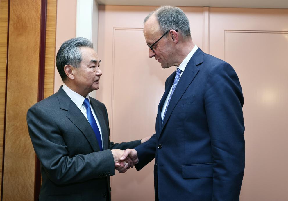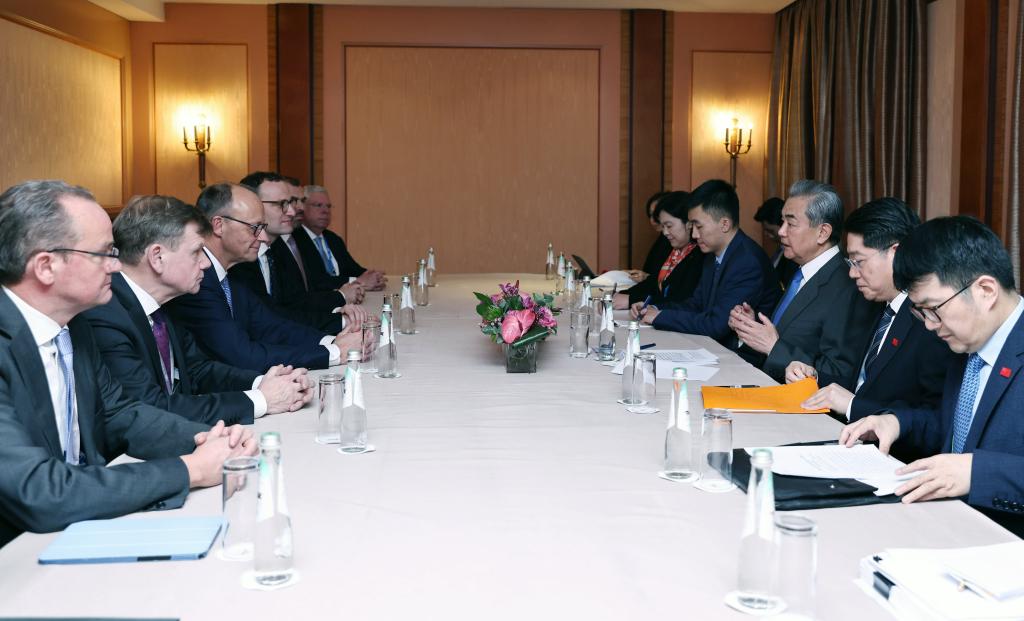 MUNICH, Germany, Feb. 15 (Xinhua) -- Chinese Foreign Minister Wang Yi on Friday met here with Friedrich Merz, chairman of Germany's Christian Democratic Union (CDU), on the sidelines of the Munich Security Conference.