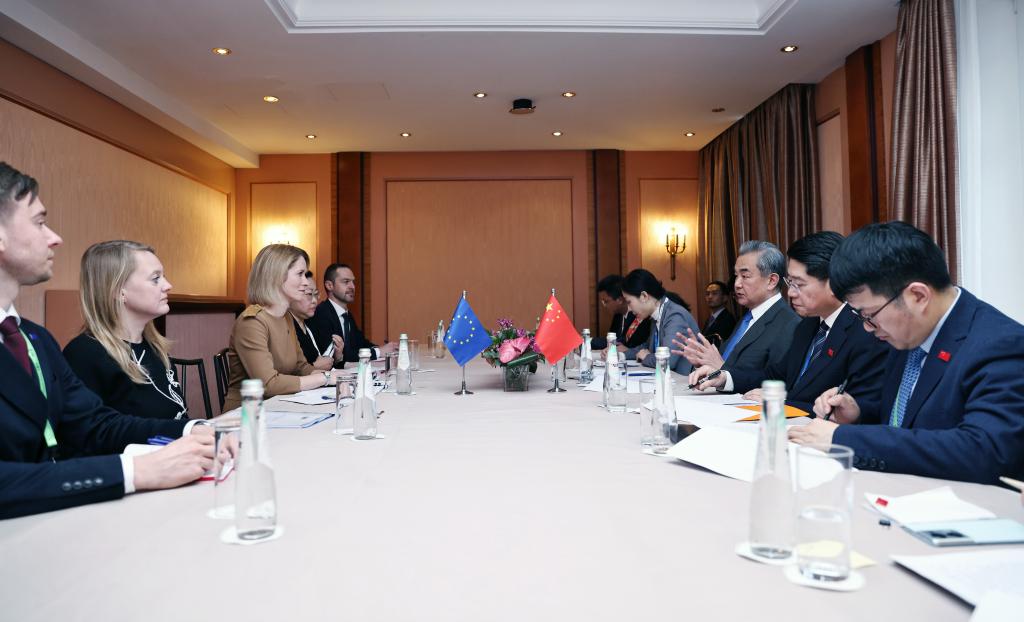 Wang, also a member of the Political Bureau of the Communist Party of China Central Committee, made the remarks when meeting with Kaja Kallas, the high representative for foreign affairs and security policy of the European Commission, on the sidelines of the Munich Security Conference.