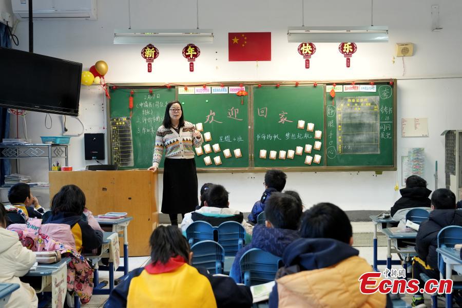 Students attend a class at a primary school in Fengtai District, in Beijing, Feb. 17, 2025. (China News Service/Zhang Xiangyi)