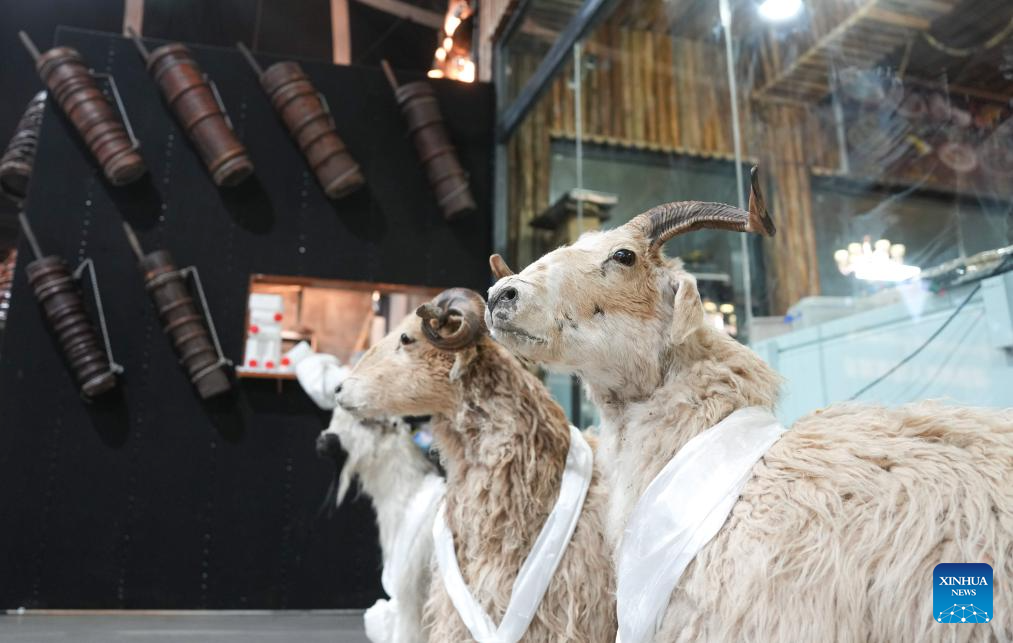 This photo taken on Feb. 13, 2025 shows animal specimens at a Tibetan-style teahouse in Seni District of Nagqu, southwest China's Xizang Autonomous Region. Covering an area of around 1,200 square meters, the Tibetan-style teahouse presents customers with both Tibetan delicacies and immersive experiences of folklore culture. Themed over 3,000 pieces of traditional Tibetan folk artifacts, the teahouse offers a lens through which people can learn about the northern Xizang nomadic culture. (Xinhua/Jigme Dorje)