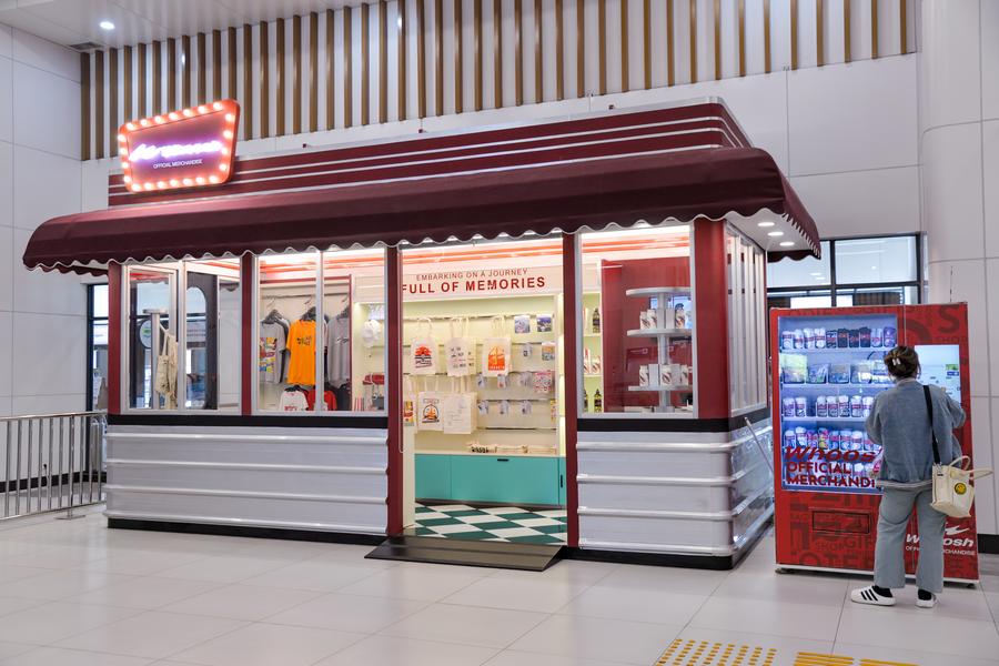 This photo taken on Feb. 17, 2025 shows a merchandise store in the waiting hall of Halim Station of Jakarta-Bandung High-Speed Railway in Jakarta, Indonesia. (Xinhua/Xu Qin)