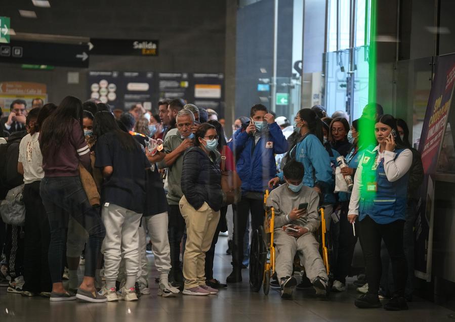 Deported migrants from the United States wait at the international arrivals gate at El Dorado International Airport in Bogota, Colombia, Jan. 28, 2025. (Photo by Andres Moreno/Xinhua)