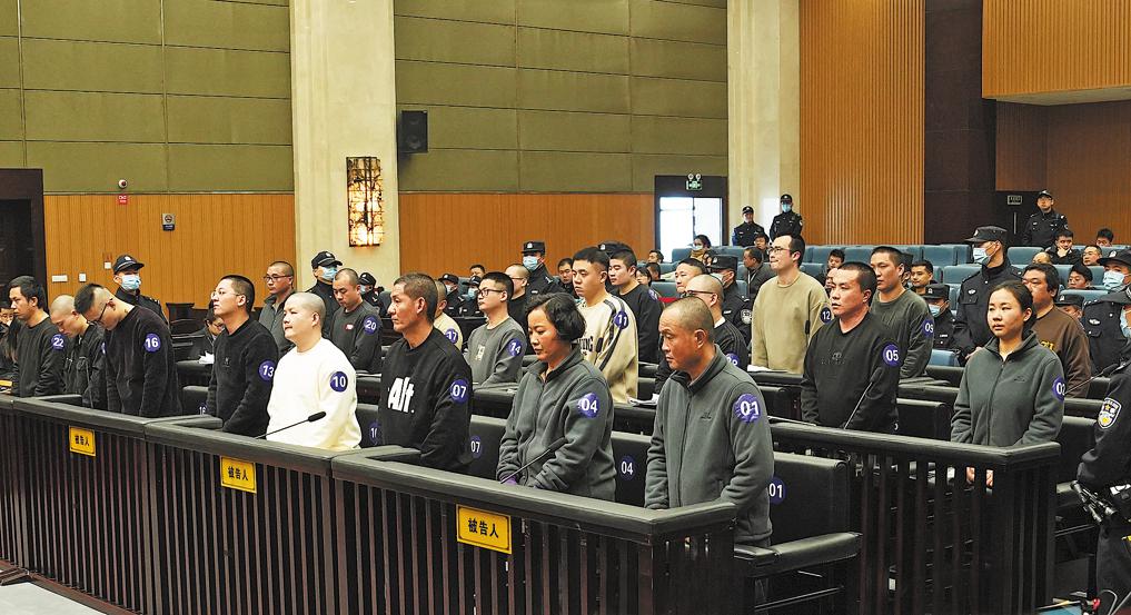 Members of a telecom fraud criminal gang stand trial at Wenzhou Intermediate People's Court in Zhejiang province. The six-day trial closed on Wednesday. (Photo/Xinhua)