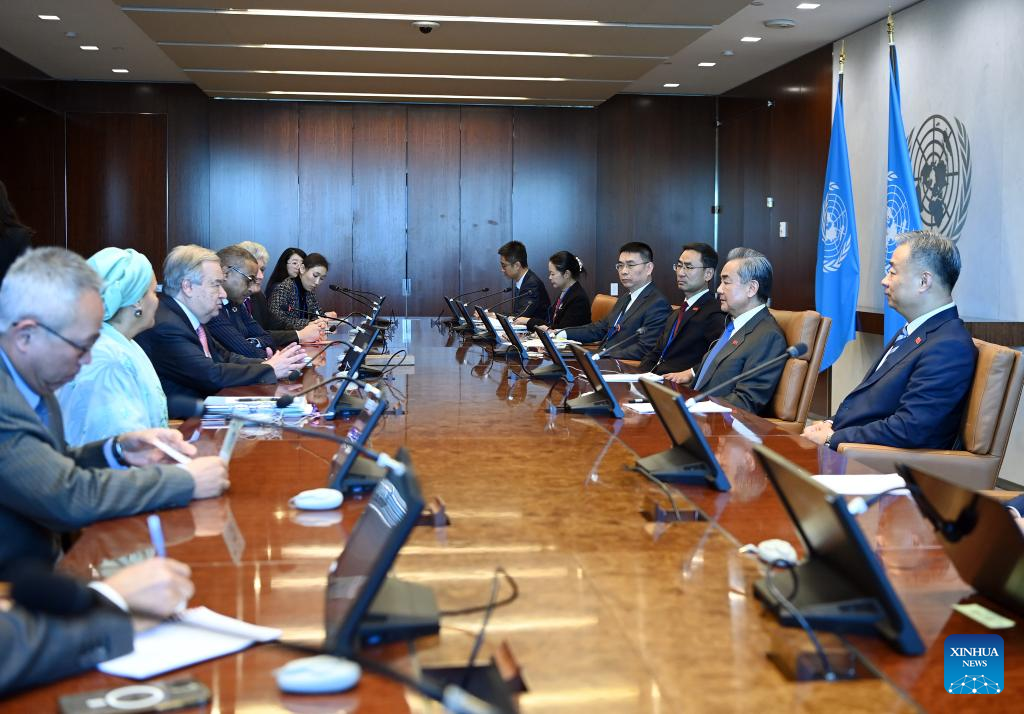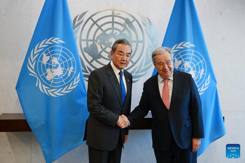 Wang, also a member of the Political Bureau of the Communist Party of China Central Committee, made the remarks when meeting with UN Secretary-General Antonio Guterres after chairing a Security Council high-level meeting.
