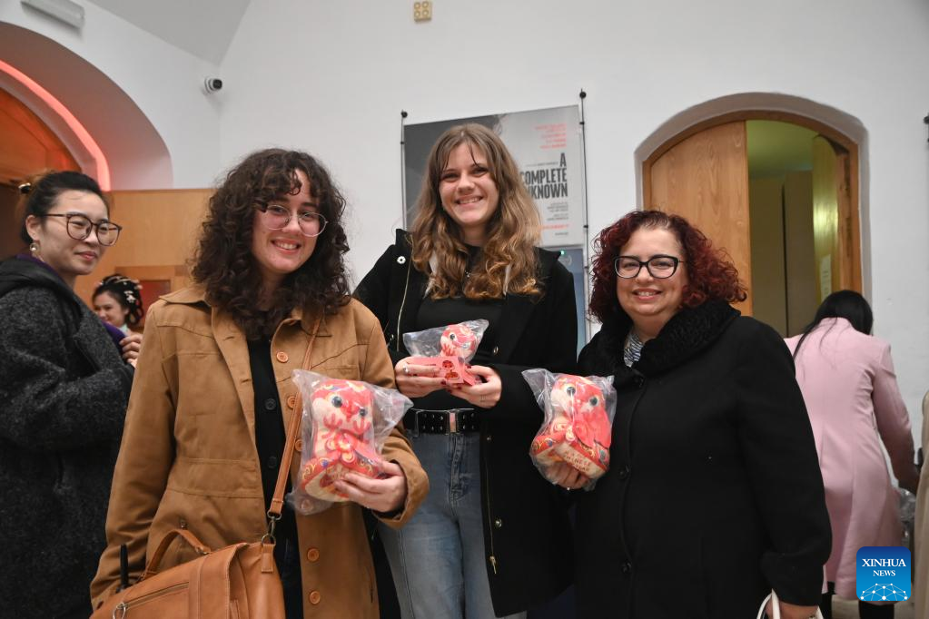 People present mascots of the Year of the Snake at Malta's National Centre for Creativity in Valletta, Malta, Feb. 18, 2025. (Photo by Jonathan Borg/Xinhua)