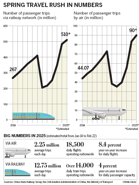 Spring Travel Rush in Numbers (Graphic/China Daily)