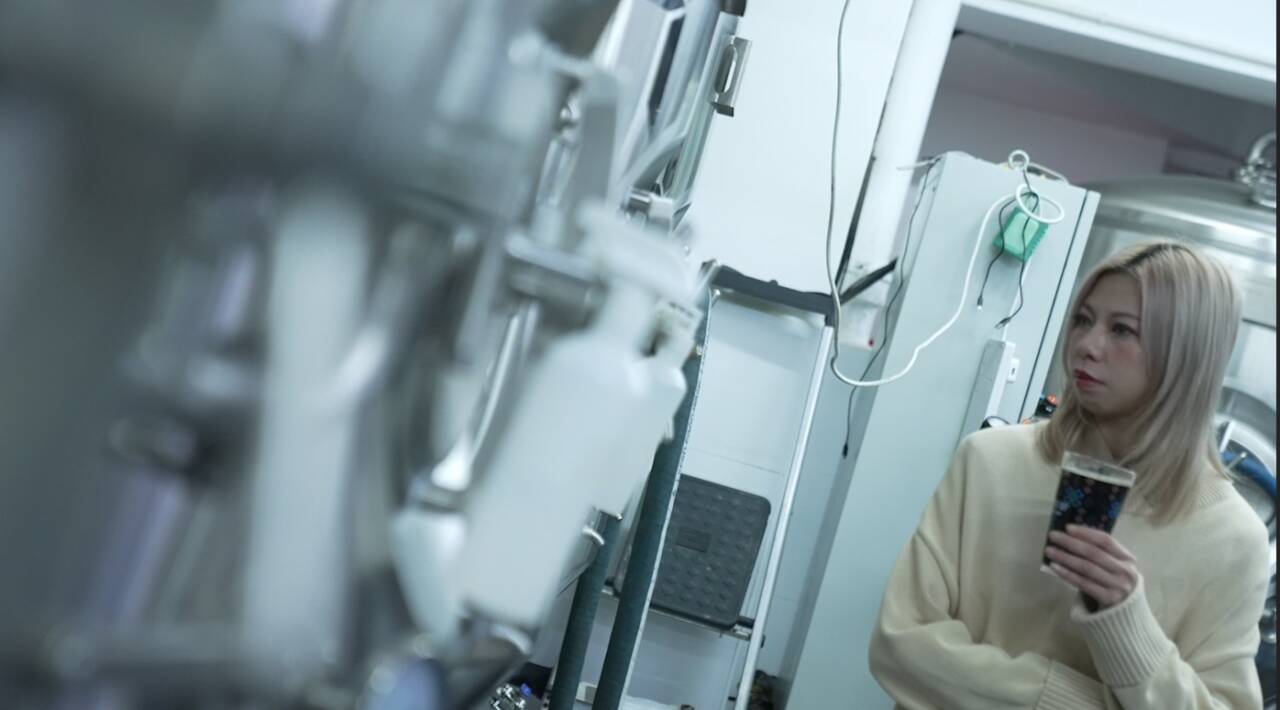 Crystal Kwok checks the brewing process at her brewery. (People's Daily Online/Yuan Meng)