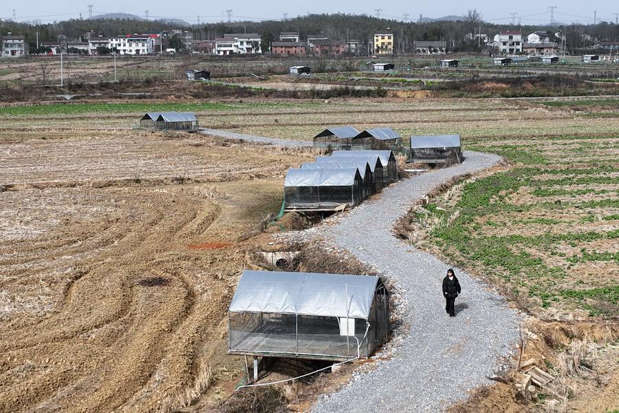 CHIBI, Feb. 21 (Xinhua) -- Tian Shuxian, a deputy to the National People's Congress (NPC), is the director of an ecological planting and breeding cooperative in Chibi City, central China's Hubei Province.