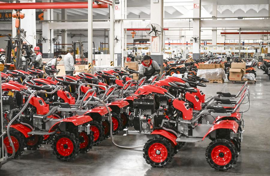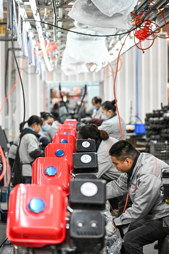 Workers operate at a production line of Chongqing Hwasdan Machinery Manufacturing Co., Ltd. in southwest China's Chongqing Municipality, Feb. 22, 2025.(Xinhua/Wang Quanchao)