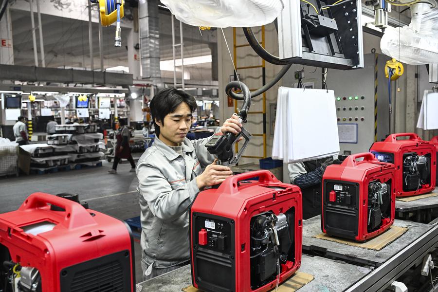A worker operates at a production line of Chongqing Hwasdan Machinery Manufacturing Co., Ltd. in southwest China's Chongqing Municipality, Feb. 22, 2025. (Xinhua/Wang Quanchao)