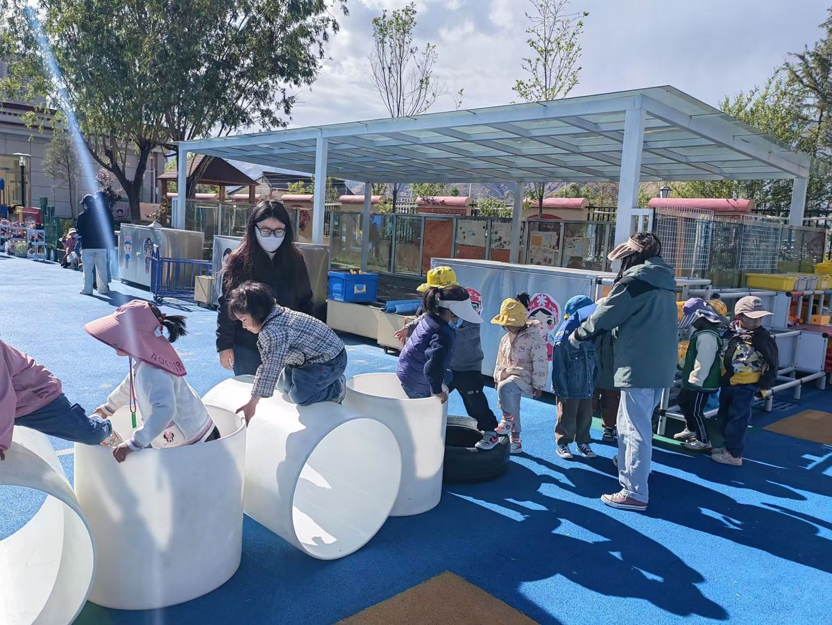 Children interact with their teachers at the Lhasa Jiangsu Experimental Kindergarten in Lhasa, capital of the Xizang autonomous region. (Palden Nyima/chinadaily.com.cn)