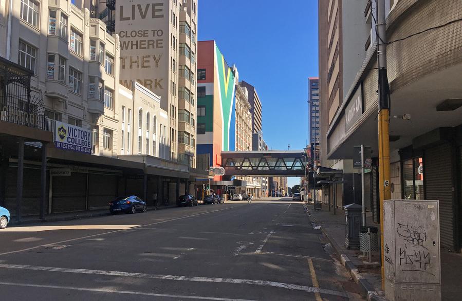 Photo shows an empty street in Johannesburg, South Africa, April 17, 2020. (Photo by Zodidi Mhlana/Xinhua)