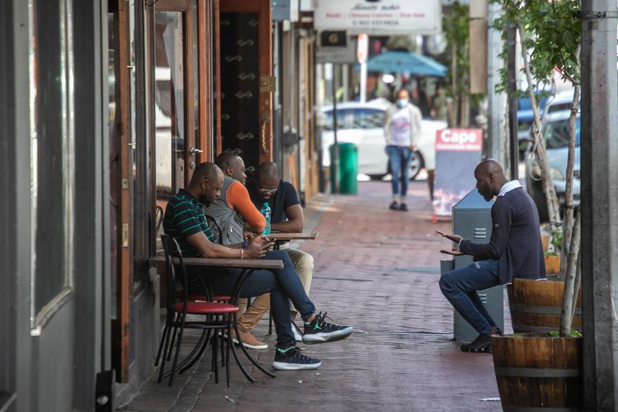 People are seen on a commercial street in Cape Town, South Africa, Nov. 28, 2021. (Xinhua/Lyu Tianran)
