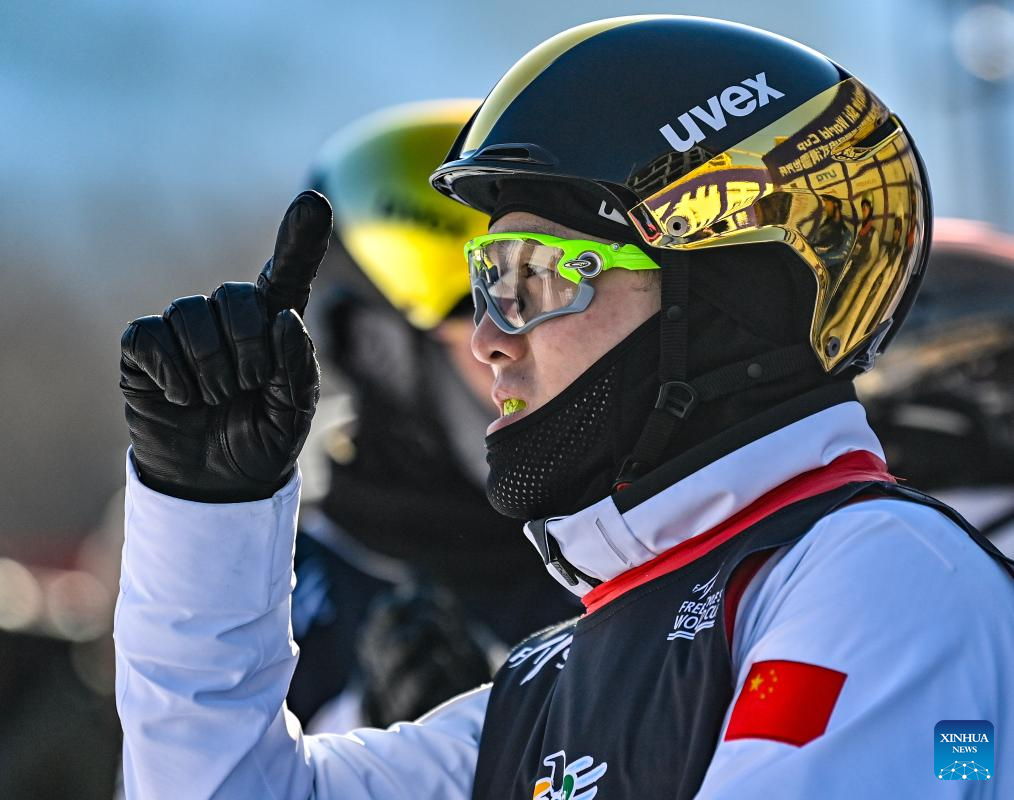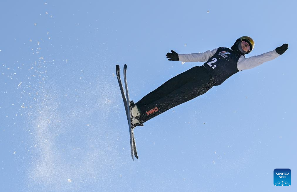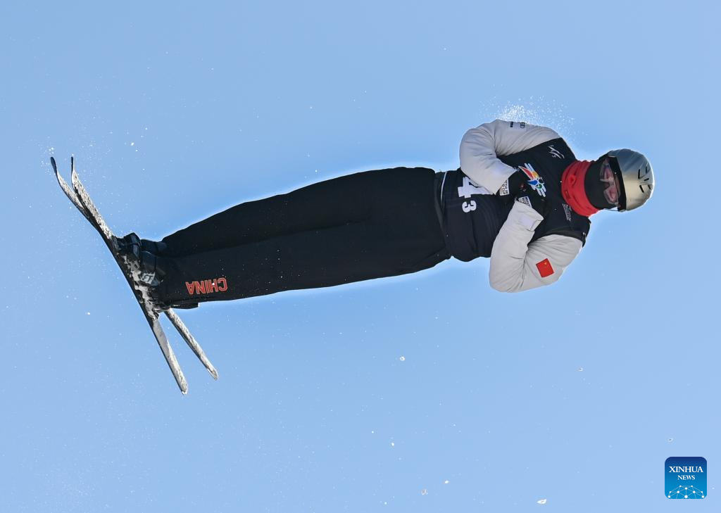 Xu Mengtao of the Team China 1 competes during the final of Mixed Team Aerials at FIS Freestyle Ski World Cup 2025 in Jilin City, northeast China's Jilin Province, Feb. 24, 2025. (Xinhua/Yan Linyun)