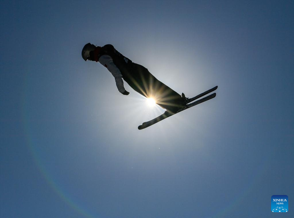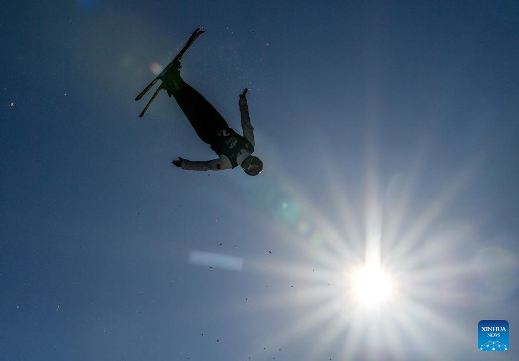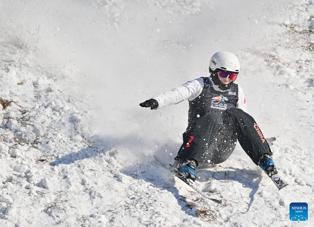 Li Tianma of the Team China 1 competes during the final of Mixed Team Aerials at FIS Freestyle Ski World Cup 2025 in Jilin City, northeast China's Jilin Province, Feb. 24, 2025. (Xinhua/Yan Linyun)
