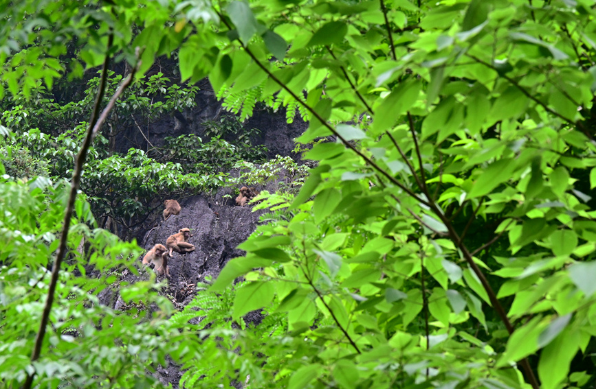 The Assamese macaque, a second-class state protected animal, has been frequently spotted searching for food in the Encheng National Nature Reserve in Daxin county, Chongzuo city, south China's Guangxi Zhuang Autonomous Region.