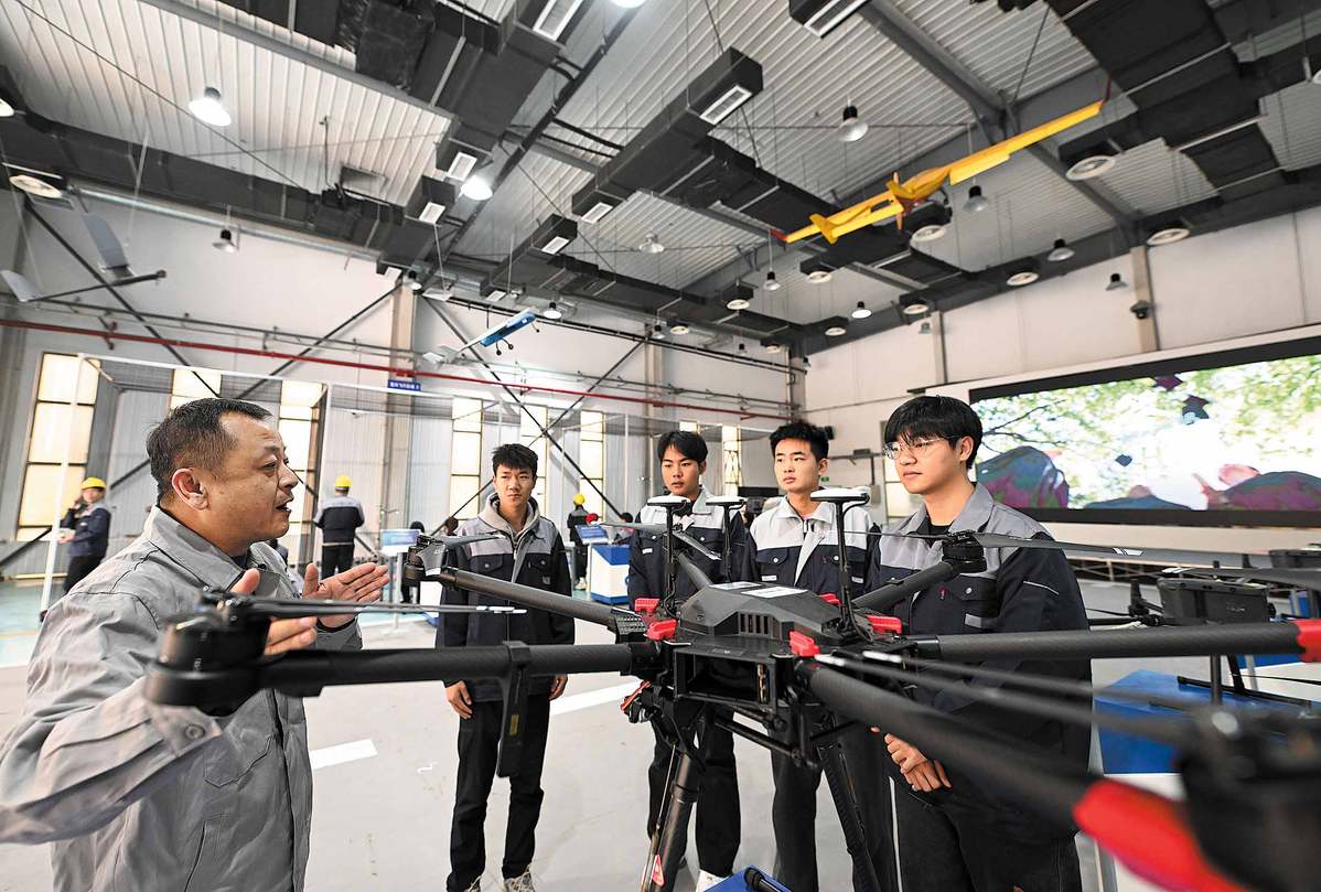 Students learn how to operate a drone at Tianjin Modern Technological Vocational College in Tianjin in November. (Photo/Xinhua)