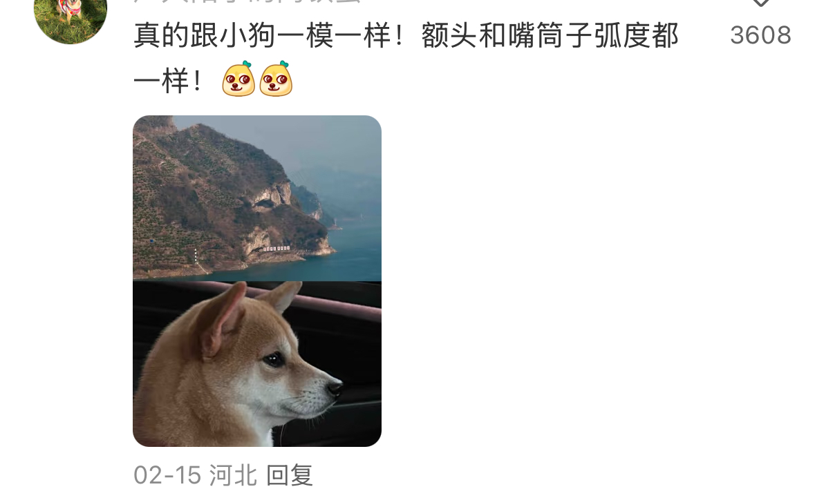 People were curious about the exact location and asked to visit the spot. Others shared photos of similar animal-shaped mountains they had discovered. Now, if you search "Puppy Mountain" on Xiaohongshu, you’ll find a collection of people sharing their check-in photos at the mountain. Some even brought their dogs along to take photos, hoping to capture the same charming shot of this puppy-shaped mountain.