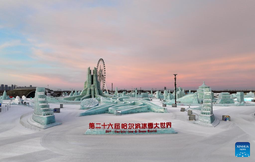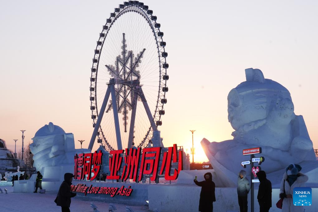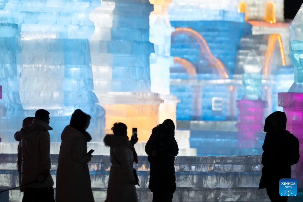 Tourists visit the Harbin Ice-Snow World in Harbin, northeast China's Heilongjiang Province, Feb. 26, 2025. Harbin Ice-Snow World, the world's largest ice-and-snow theme park, officially closed its 26th edition on Wednesday evening in the city of Harbin, capital of China's northernmost Heilongjiang Province, attracting a record-breaking 3.56 million tourist visits, said the park's operator. (Xinhua/Zhang Tao)
