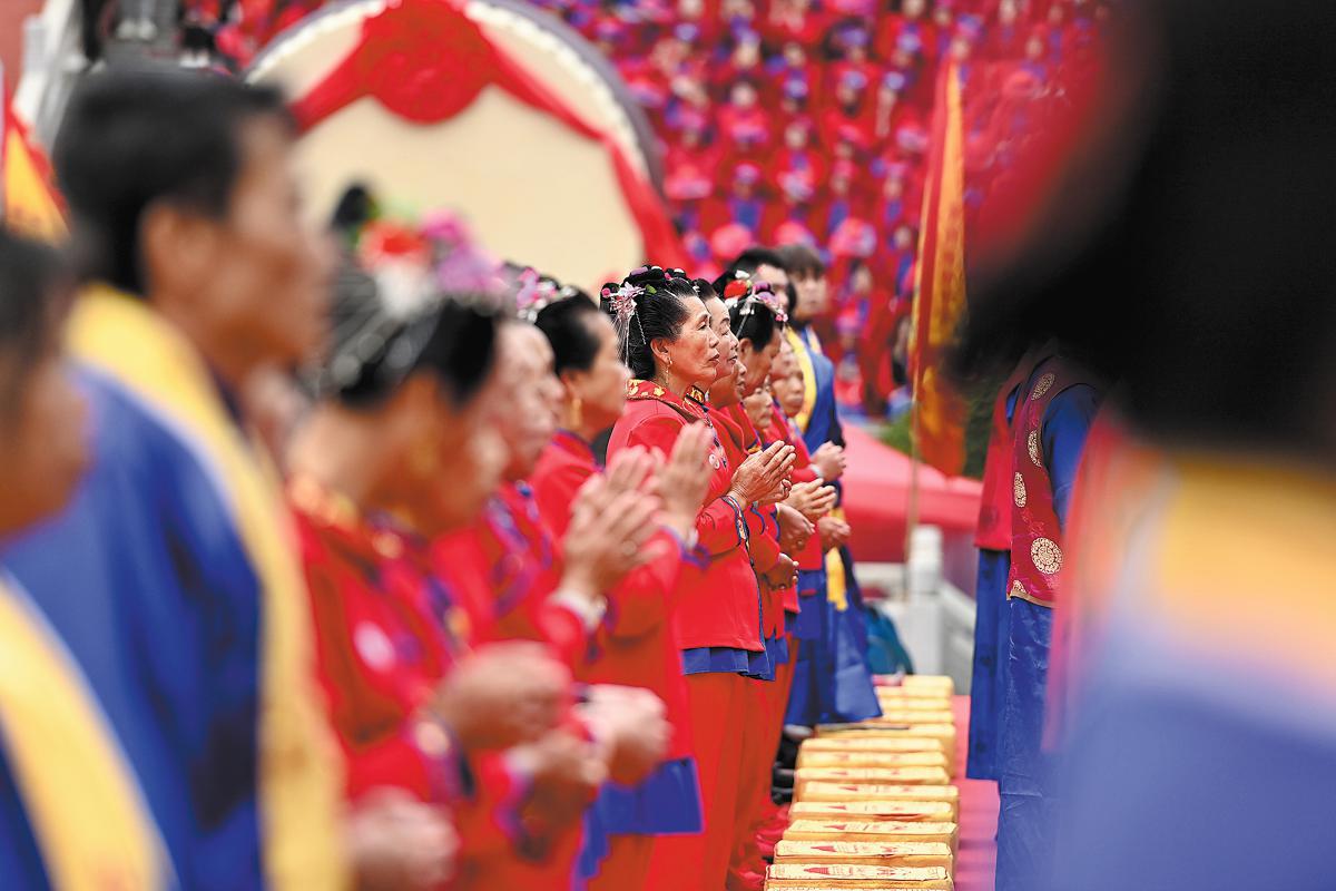 Believers pray for safety and good fortune during a grand ceremony paying tribute to Mazu on Meizhou Island in Fujian province on Nov 19. (Wang Dongming/China News Service)