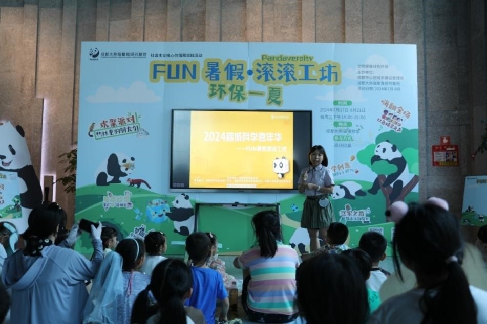At the Chengdu Research Base of Giant Panda Breeding (hereafter referred to as "the giant panda base") in Chengdu, southwest China's Sichuan province, an engaging science educational session led by the base's science education team was underway. Visitors gathered around, eager to participate.
