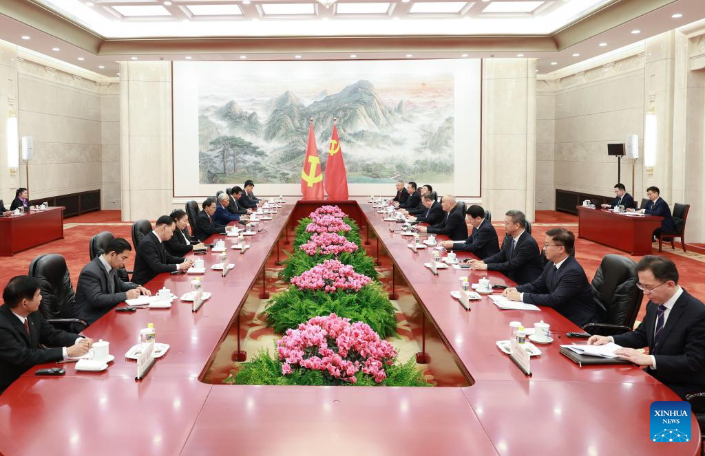 BEIJING, Feb. 27 (Xinhua) -- Cai Qi, a senior official of the Communist Party of China (CPC), met with a delegation led by Bounthong Chitmany, a politburo member of the Lao People's Revolutionary Party (LPRP) Central Committee, a permanent member of the Secretariat of the LPRP Central Committee, and vice president of Laos, in Beijing on Thursday.