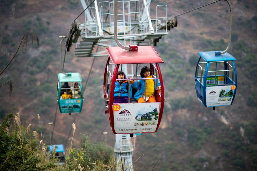 KUNMING, Feb. 28 (Xinhua) -- For the eager student Chen Honghan, the journey to school has transformed from a treacherous three-hour trek through rugged mountains to a swift 30-minute trip that feels like soaring through the clouds, thanks to the "cloud school bus."