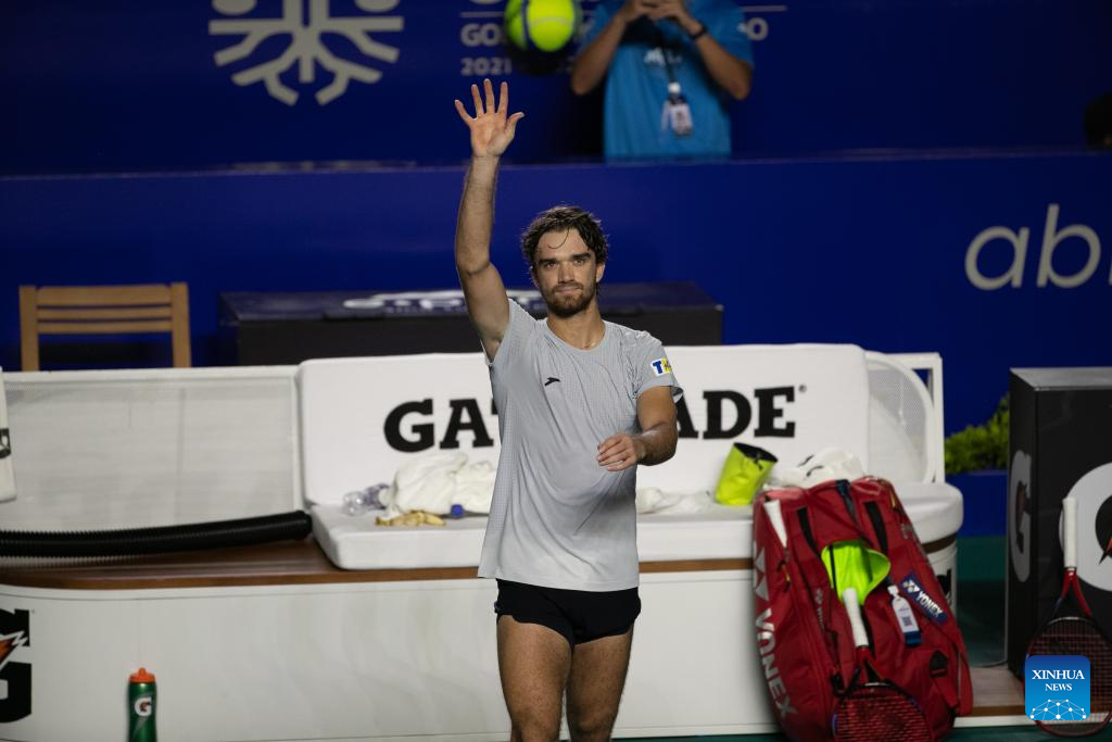 Tomas Machac of the Czech Republic gestures to the audience after the singles semifinal match against Nakashima Brandon of the United States at the 2025 ATP Mexican Open tennis tournament in Acapulco, Mexico, Feb. 28, 2025. (Xinhua/Li Mengxin)