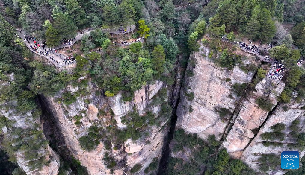 - Tourists visit scenic spot noted for splendid building in Zhangjiajie, C China