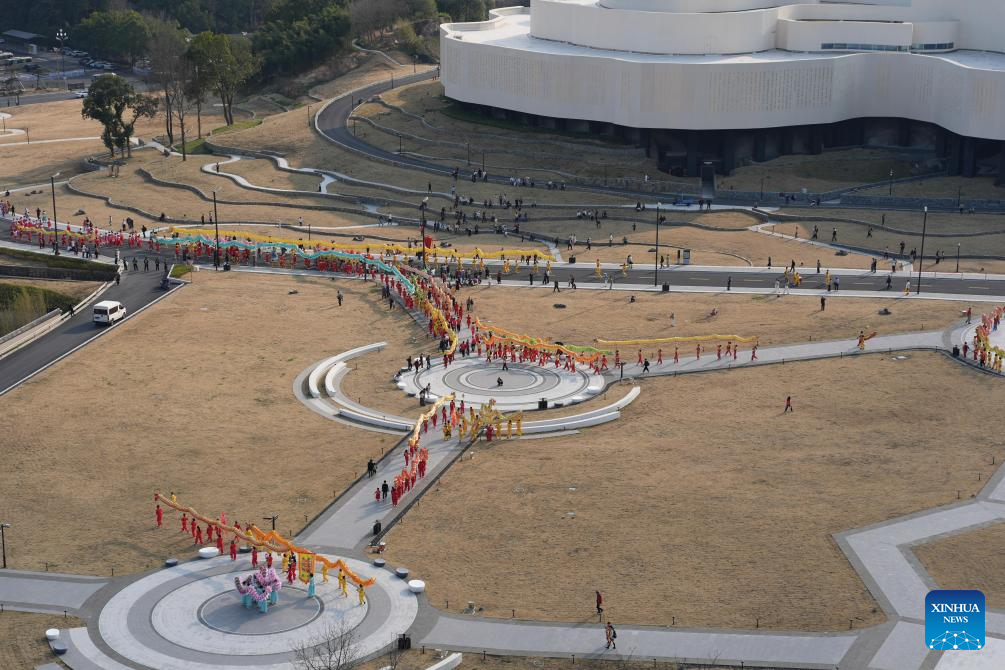 People perform the Fenghua Cloth Dragon Dance during a cultural event in Fenghua, east China's Zhejiang Province, March 1, 2025. The Fenghua Cloth Dragon Dance was listed as a national intangible cultural heritage of China in 2006. (Xinhua/Huang Zongzhi)