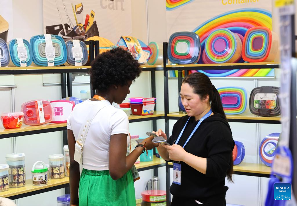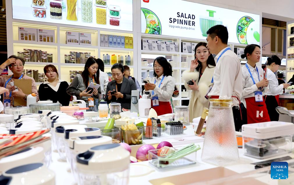 People communicate at a booth for household products during the 33rd East China Fair in Shanghai, east China, March 1, 2025. The 33rd East China Fair kicked off here on Saturday, featuring more than 5,100 booths in six themed sections of garments, textiles, household products, gifts, cross-border e-commerce, and overseas business. (Xinhua/Fang Zhe)