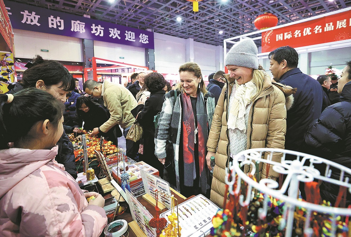 Members of the diplomatic corps select products at a Spring Festival event in Langfang, Hebei, on Jan 23. (Photo/Xinhua)