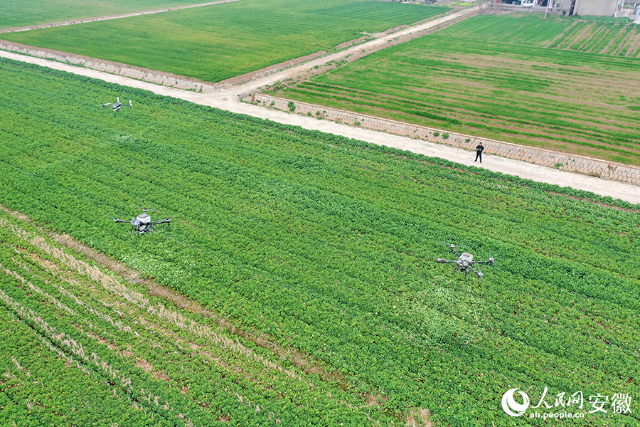 Drones fertilize rapeseed plants in Zhanghu township, Wangjiang county, east China's Anhui Province. (People's Daily Online/Chen Ruotian)