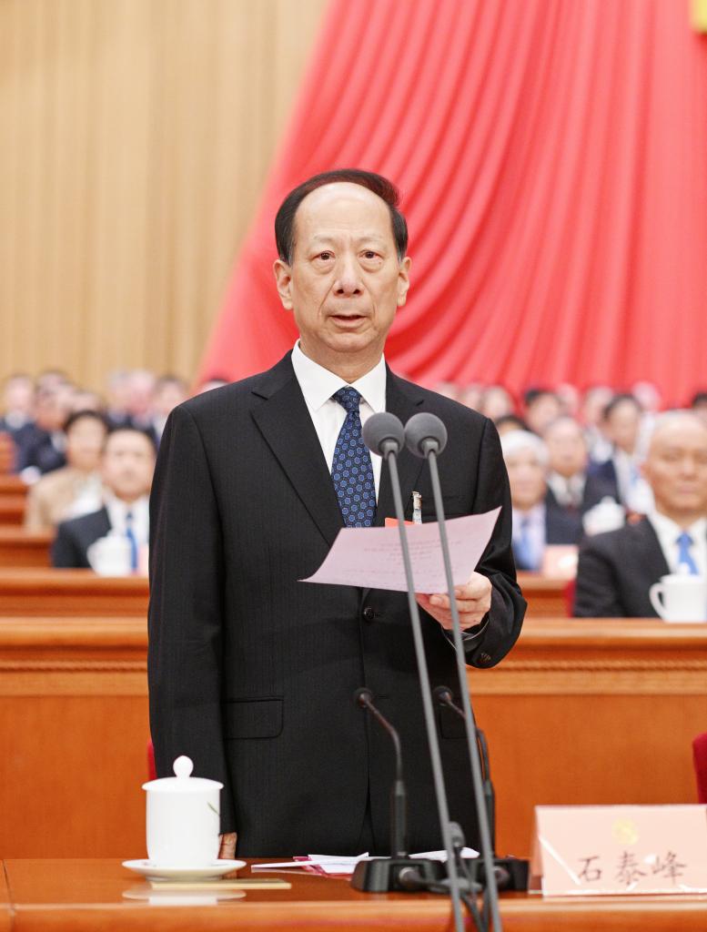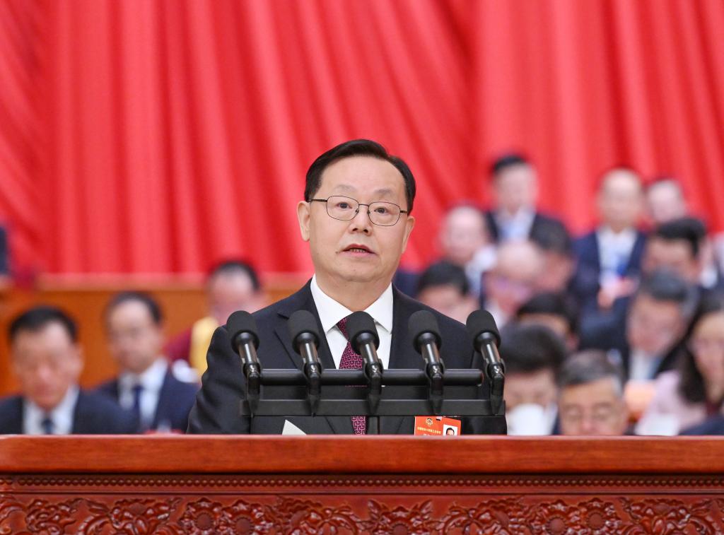Wang Huning, chairman of the CPPCC National Committee, delivered a work report on behalf of the Standing Committee of the CPPCC National Committee.