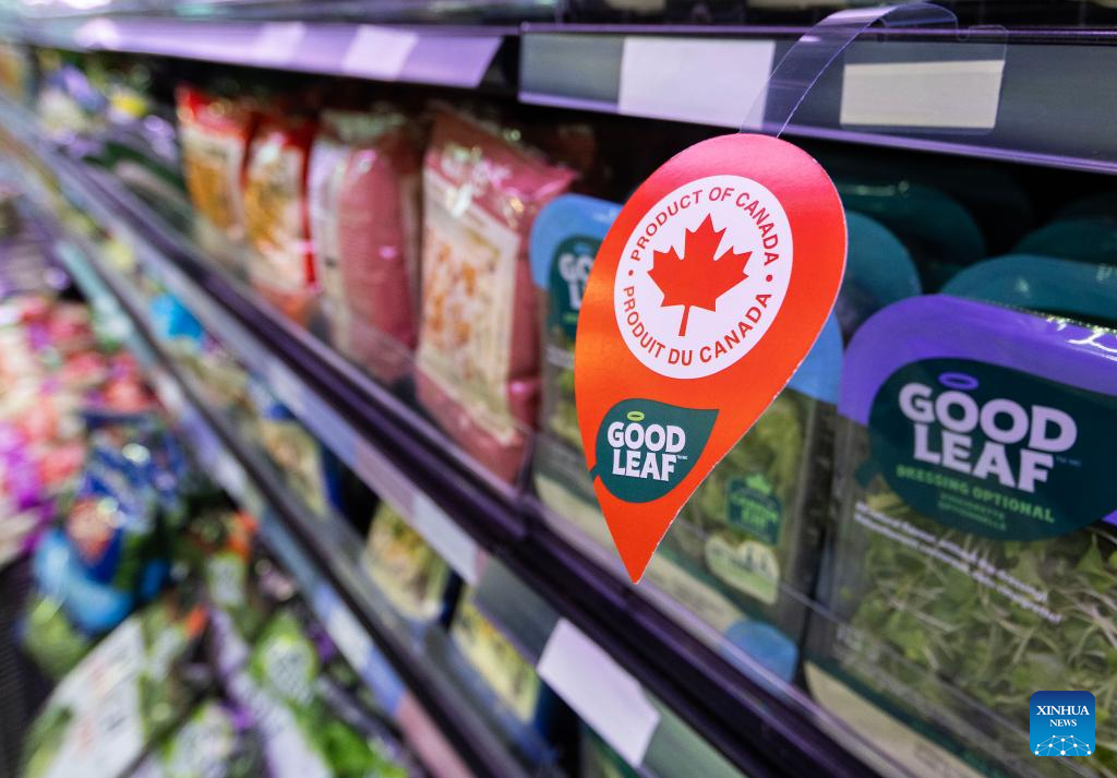A "PRODUCT OF CANADA" sign is seen at a supermarket in Toronto, Ontario, Canada, on March 4, 2025. (Photo by Zou Zheng/Xinhua)