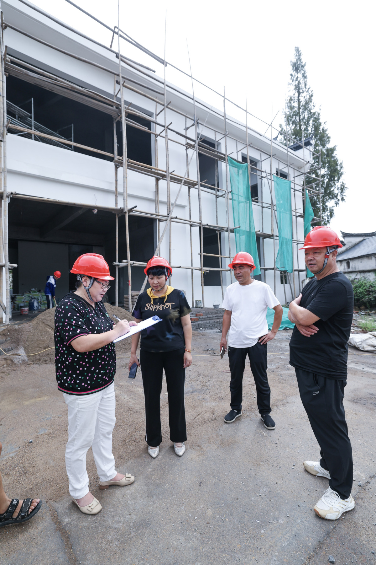 Zhou Yefang (left) and Xu Lihong (second left), who are deputies to local people's congresses in Tongshan town of Zhuji, Zhejiang province, conduct field research at a construction site in Tongshan in September to make sure that livelihood improvement projects are progressing smoothly. (Xu Yu/Xinhua)