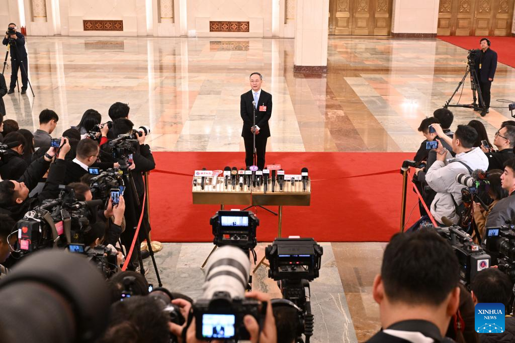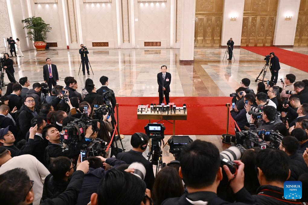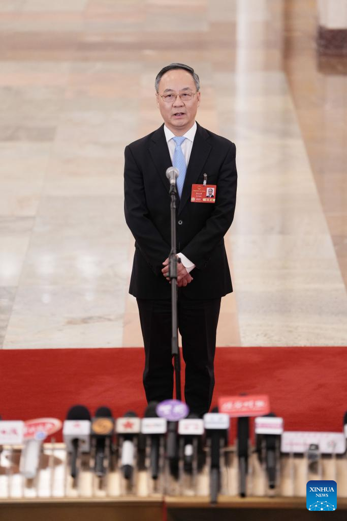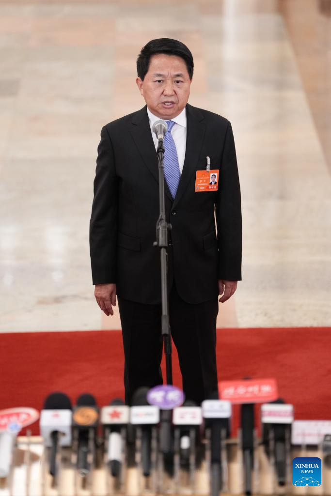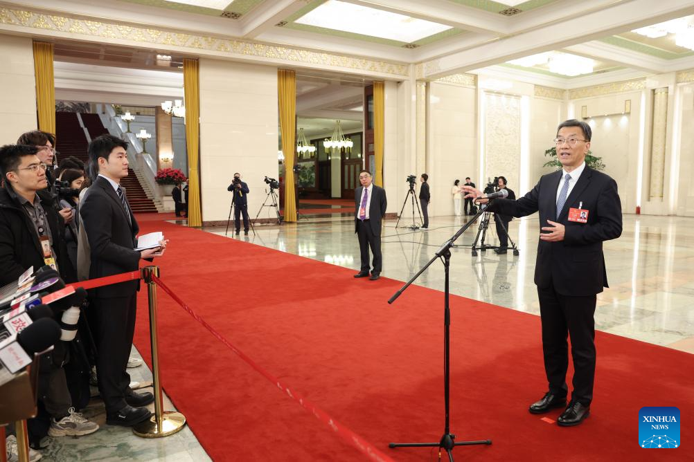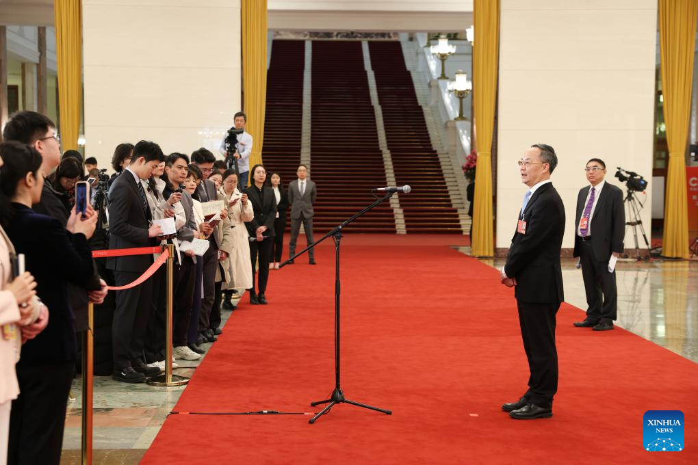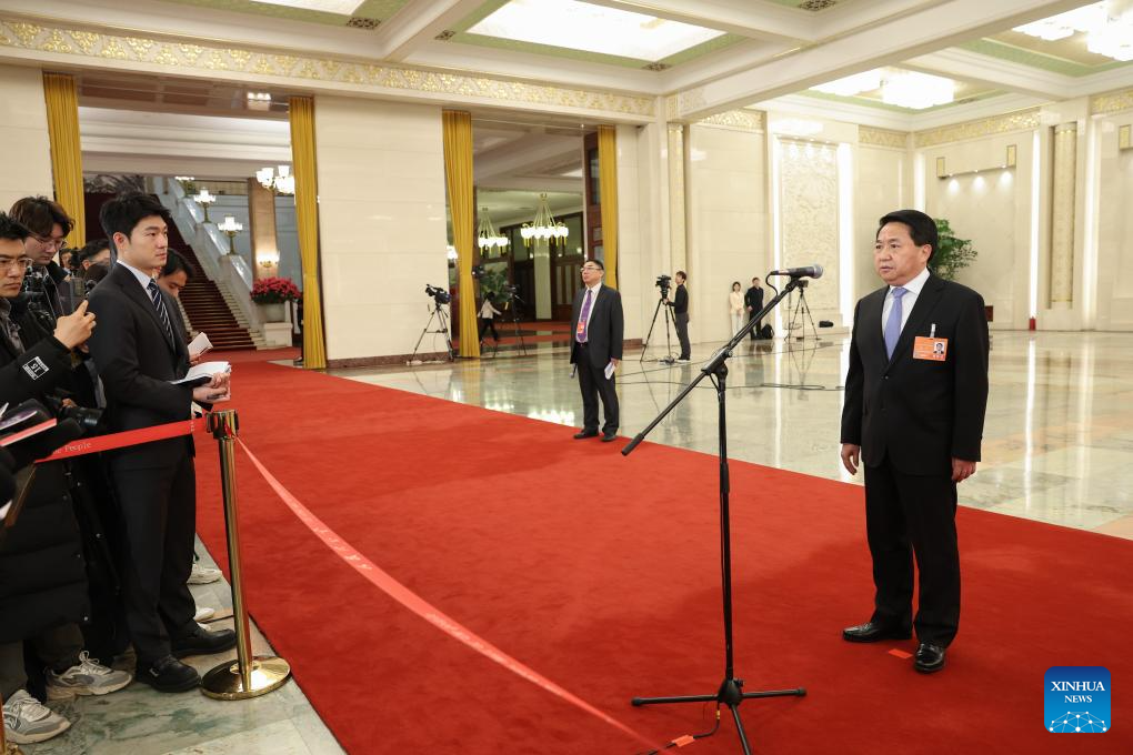 Luo Wen, head of the State Administration for Market Regulation, gives an interview after the opening meeting of the third session of the 14th National People's Congress (NPC) at the Great Hall of the People in Beijing, capital of China, March 5, 2025. (Xinhua/Lyu Shuai)